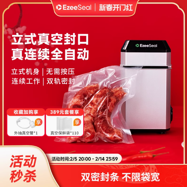 ezeeseal真空封口机家用小型包装保鲜食品袋塑封器立式抽真空机